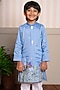 Sky Blue Sikh & Cotton Silk Floral Embroidered Kurta Set For Boys