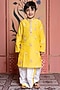 Yellow Mul Chanderi Embroidered Kurta Set For Boys