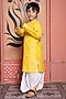 Featuring a yellow kurta for boys in mul chanderi base with floral embroidery. It is paired with white cotton silk dhoti pants. Style it with juttis and a watch for a festive occasion or pooja ceremony.