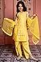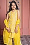 Yellow Mul Chanderi & Organza Floral Embroidered Kurta Set For Girls