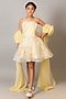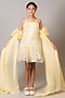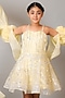 Featuring a yellow dress in for girls in organza and net base with embroidery. It is paired with a drape. Style it with sandals and hair accessories for a birthday party or festive occasion.