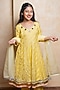 Yellow Organza Viscose Embroidered Anarkali Set For Girls