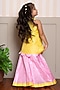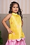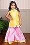 Featuring a bright yellow kurta for girls in pure silk base with floral embroidery. It is paired with pink palazzo pants. Style it with cute hair accessories and sandals for a festive occasion or wedding ceremony.