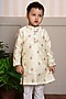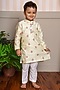 Featuring a yellow kurta for boys in pure chanderi silk and cotton silk base with embroidery. It is paired with white pants. Style it with juttis and a watch for a festive occasion.