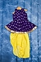 Featuring a purple peplum top for girls in crepe chiffon and satin silk base with mirror embellishments and floral embroidery. It is paired with yellow dhoti pants. Style it with sandals, a sling bag and an embellished hairband, ideal for any festive occasion.