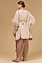 Featuring a cream kaftan in chinon base with dori embroidery. It is paired chocolate brown harem pants having chinon bindi details and an inner. Accentuate it with heavy jewellery and heels for festive occasions or wedding ceremonies.