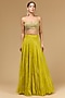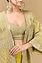 Lime Green Organza Aari Work Jacket Lehenga Set
