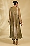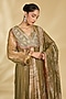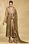 Featuring an olive green tie-dyed kurta in chiffon base with zari yoke. It is paired with pants, a dupatta and an inner. Accentuate with dangler earrings and heels for a festive occasion or sangeet ceremony.