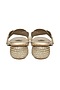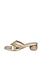 Featuring a pair of gold heels in silk, wood and PVC base with inter-woven metallic straps. It has a double cushioned for comfort and 1.5-inch round heels. Perfect for weddings, sangeet nights, mehendi ceremonies, festive parties, and elegant evening celebrations.