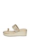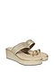 Featuring a pair of gold platform wedges in silk, wood and PVC base with toe-ring and metallic woven design. It has a double cushioned for comfort and 2.5-inch heels. Perfect for weddings, sangeet nights, mehendi ceremonies, festive parties, and elegant evening celebrations.