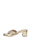 Featuring a pair of gold block heels in silk, wood and PVC base with bead detail. It has a cushioned sole and 2.5-inch heels. Style these footwear with sleek sarees, wedding lehengas or Indo-Western sets for a glamorous touch.