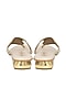 Featuring a pair of gold block heels in silk, wood and PVC base with mirror and pearl hand work. It has a cushioned sole and 1-inch heels. Style these footwear with sleek sarees, wedding lehengas or Indo-Western sets for a glamorous touch.