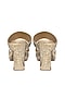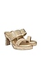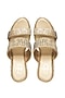 Featuring a pair of gold block heels in silk, wood and PVC base with sequins and bead work. It has a cushioned sole and 3-inch embellished heels. Style these footwear with sleek sarees, wedding lehengas or Indo-Western sets for a glamorous touch.