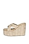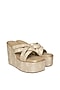 Featuring a pair of nude gold platform wedges in silk, wood and PVC base with textured straps. It has a cushioned sole and 5-inch heels. Style these footwear with sleek sarees, wedding lehengas or Indo-Western sets for a glamorous touch.