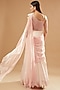Featuring a rose pink skirt style draped saree in shimmer lurex base with a georgette draped pallu and an attached hand embellished blouse. Perfect wear for cocktail parties.