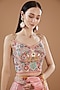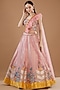 Featuring a rose pink lehenga in silk base with resham, gota, sequins and cutdana hand and machine embroidery, including an attached organza frilled dupatta. It is paired with a matching embroidered choli.