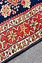 This bright red and navy blue carpet, made of wool and cotton, was created using the famous age-old hand-knotting technique, with thousands of manually weaved knots. It takes months of sheer hard work and artistry, so proudly display this piece of craftsmanship.