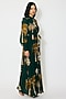 Dark Green & Mustard Muslin Cotton Silk Floral Printed Shirt Dress