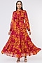 Featuring a dark pink and mustard frilled dress in chiffon base with floral print.