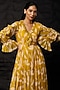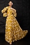 Featuring a mustard and peach maxi dress in chiffon base with floral print.