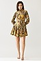 Olive Green & Mustard Cupro Chiffon Floral Mini Dress