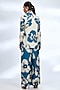 Featuring a white and blue shirt in muslin cotton silk base with floral digital print. It is paired with pleated pants. Accentuate it with hoop earrings, block heels and a sling bag for a brunch date or sundowner.