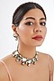 Featuring a black rhodium finish necklace studded with victorian polki, set in brass. It is paired with a matching pair of earrings. Perfect wear for festive occasions or wedding ceremonies.
