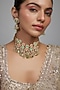 Featuring a gold finish meenakari choker necklace studded with pink agate stones and pearls, set in brass. It is paired with a matching pair of earrings. Perfect wear for festive occasions or wedding ceremonies.