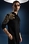 Featuring a black kurta in cotton base with satin weave detailing and lion hand embroidery. Style it with pants, kolhapuri sandals for a festive gathering and intimate pooja ceremony.