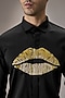 Black Cotton Lips Hand Embroidered Shirt
