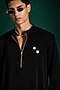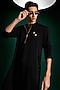 Featuring a black kurta in lachka base with hand embroidery. Accentuate it with trousers, pair of loafers and a watch for festive soirees, sangeet or cocktail ceremony.