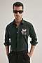 Bottle Green Cotton & Satin Hand Embroidered Shirt
