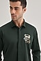 Featuring a bottle green shirt in cotton and satin base with hand embroidery. Style it with pants, pair of sneakers and a watch for a casual outings, date nights or evening wear.