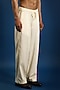 Featuring ivory straight trousers in cotton and satin base. Style it with a kurta and kolhapuri sandals for a festive occasion or intimate pooja ceremony.