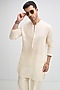 Featuring an ivory woven kurta in linen base. Style it with pants and kolhapuri sandals for a festive occasion, family gathering or intimate pooja ceremony.