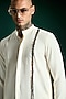 Featuring an ivory kurta in suiting base with hand embroidery. It is paired with pants. Accentuate it with pair of loafers and a bracelet for festive soirees or pooja ceremony.