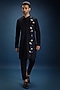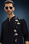 Featuring a navy blue kurta in cotton base with satin weave detailing and hand embroidery. Style it with pants, kolhapuri sandals for a festive gathering and intimate pooja ceremony.
