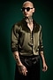Featuring an olive green handcrafted shirt in luxe suiting base. Style this shirt with tailored trousers and loafers for a sleek look, perfect for dinner parties or evening celebrations.