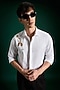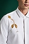 Featuring a white shirt in stretch cotton satin base with champagne hand embroidery. Style this shirt with tailored trousers and loafers for a sleek look, perfect for dinner parties or evening celebrations.