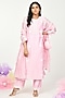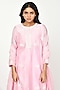 Featuring a baby pink kalidar kurta in chanderi base with thread embroidery. It is paired with matching pants, a dupatta, and a slip.