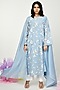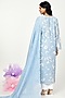 Featuring a blue straight kurta in chanderi base with jaal embroidery. It is paired with contrasting white pants and a dupatta.