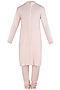 Featuring a cream kurta in cotton silk base. It is paired with matching churidar pants.