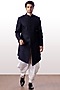 Featuring a navy blue paneled achkan jacket in terry rayon base. It is paired with contrasting cream cotton dhoti pants. Perfect wear for a wedding, sangeet or engagement ceremony.