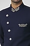 Featuring a navy blue jacket in cupro base with motif embroidery on collar and pocket. It is paired with matching pants.