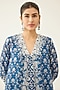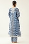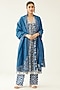 Featuring a blue long kurta in cotton chanderi base with hand block print and side pockets, including sequins, beads and tassels work. It is paired with matching cotton printed pants having side pockets and an elasticated waistband, a silk chanderi dupatta and a cotton slip.