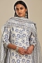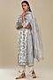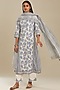 Featuring a blue and off-white kurta in cotton base with floral hand block print, striped side panels, and side slits. It is paired with matching pants and a cotton chanderi dupatta.