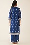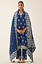 Featuring a blue straight kurta in silk chanderi base with silk thread embroidery. It is paired with matching straight pants having side pockets and an elasticated waistband, including a dupatta.