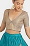 Featuring a blue choli in silk chanderi base with a deep v-neckline, side zip, gota piping detail and gota work. Style it with a lehenga, statement jewellery and heels for a sangeet, wedding or engagement ceremony.