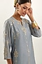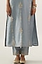 Featuring a blue straight kurta in silk chanderi base with gota lace, gold zari and gota embroidery. It is paired with matching cotton straight pants and an organza dupatta.
