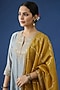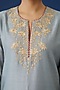 Featuring a bluish grey kurta in silk chanderi base with gota and beads embroidery. It is paired with matching cotton pants and a yellow cotton chanderi dupatta.